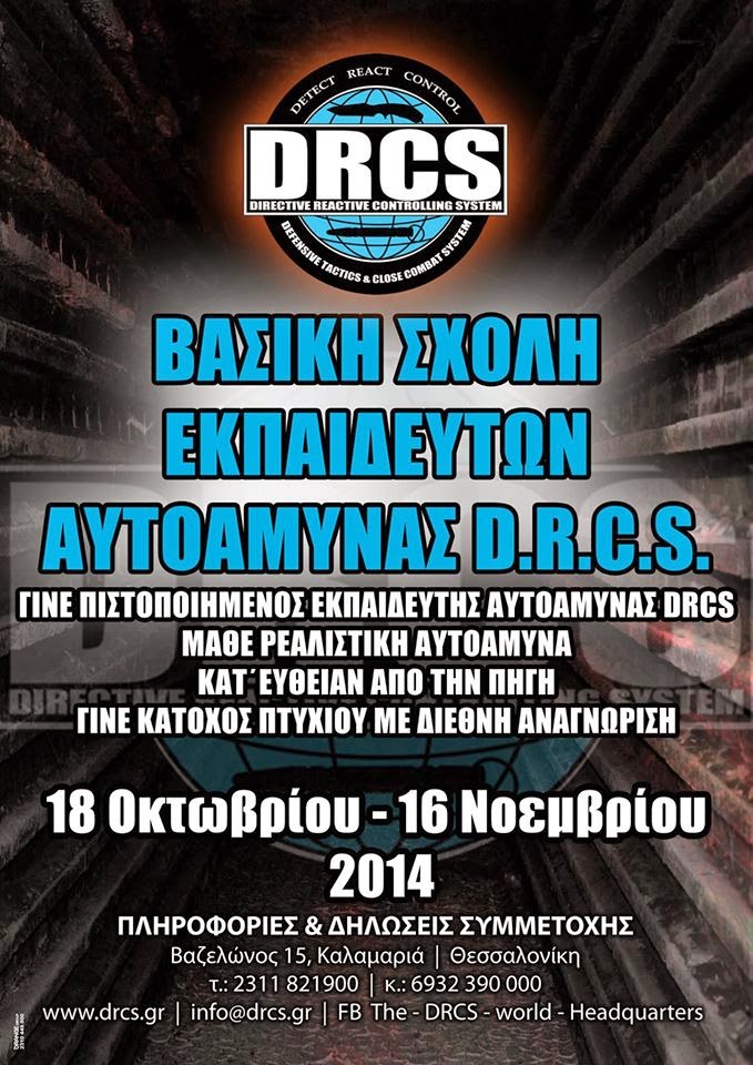 Από τις 18 Οκτωβρίου ως τις 16 Νοεμβρίου η Βασική Σχολή Εκπαιδευτών Αυτοάμυνας DRCS 0 ΕΛΛΑΔΑ & ΚΟΣΜΟΣ 10:14 μ.μ. Στην Θεσσαλονίκη, την έδρα της Ομοσπονδίας DRCS θα πραγματοποιηθεί η Βασική Σχολή Εκπαιδευτών Αυτοάμυνας DRCS. Περισσότερα: https://www.facebook.com/thedrcsheadquarters
