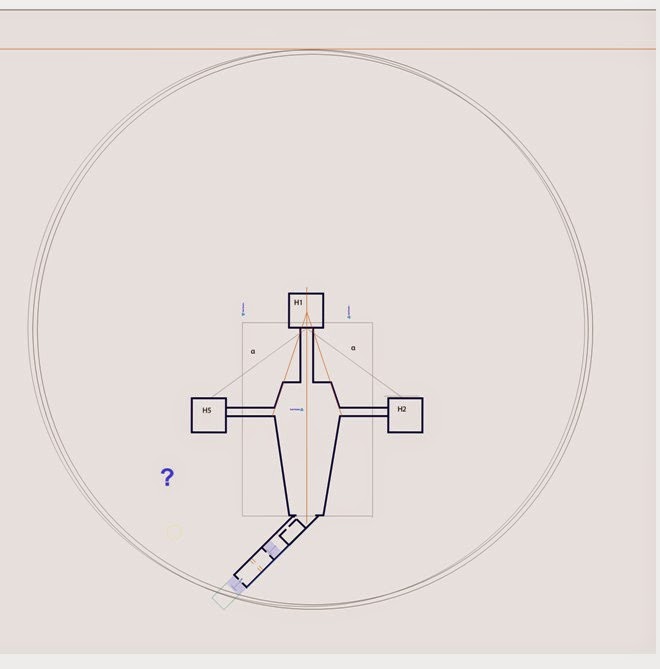 1)Το ισοσκελές τρίγωνο που σχηματίζεται στην κορυφή του σχεδίου από τα Η1-Η2-Η5, σε συνδυασμό με το γεωμετρικό σχήμα που προέκυψε από την αποτύπωση του L1, διαπίστωσα το παρακάτω Α8:
