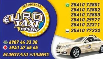 Τηλέφωνα κλήσης της εταιρείας Euro Taxi Ξάνθης 0 Π.Ε. ΞΑΝΘΗΣ 10:52 π.μ. Τα τηλέφωνα κλήσης, σταθερά και κινητά, ανακοίνωσε στην ιστοσελίδα της η εταιρεία Euro Taxi Xanthi.